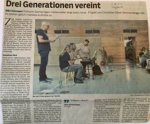 Gemeinsame Probe für die Märchenoper Hänsel und Gretel am 26. Juli 2025 an der Wiesentalschule in Gruol