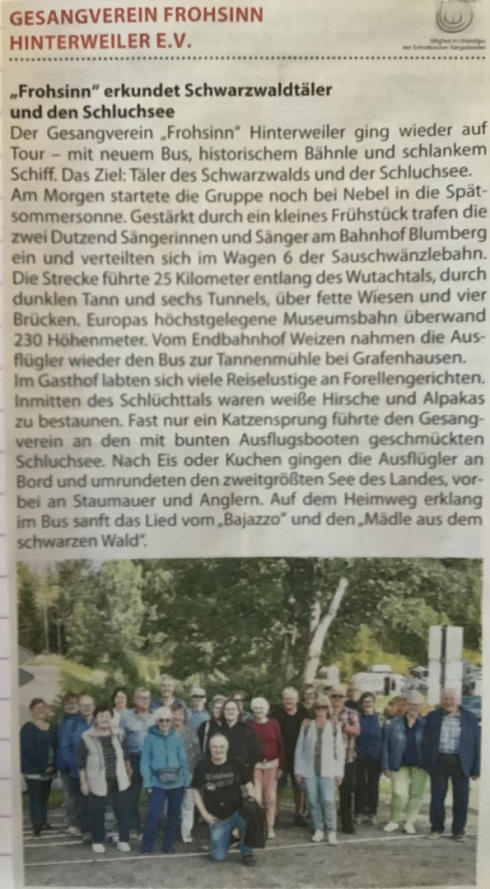 Ausflug mit der Sauschwänzle-Bahn, an die Tannenmühle und den Schluchsee am 6. September 2025